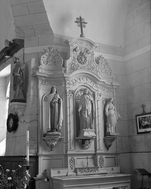 Autels retables construits vers le milieu du 18e siècle ; gradins ajoutés au 19e siècle et tabernacle à l'autel nord. Statues et antependium, non étudiés.