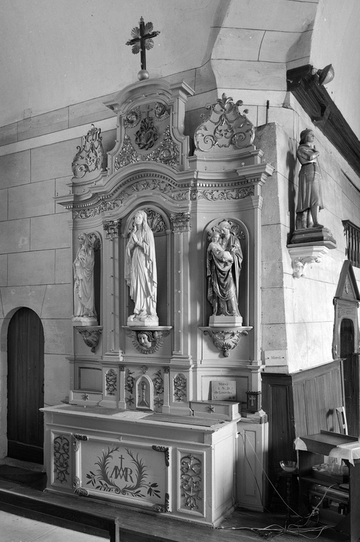 Autel rectangulaire droit, retable à niches, ailes concaves.