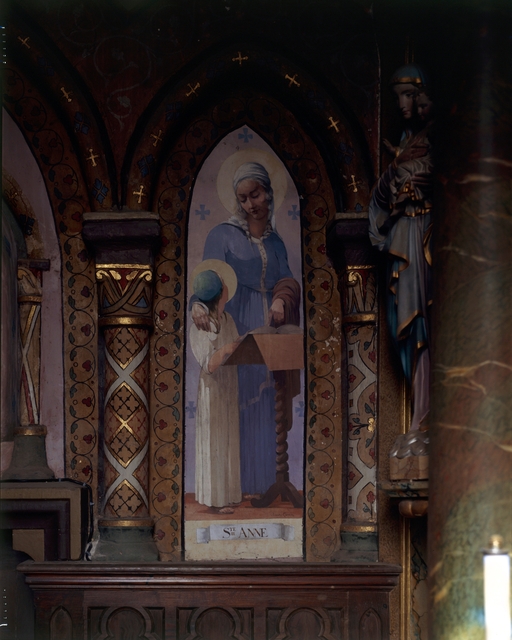 - figures: en pied, sainte Anne, Education de la Vierge, pupitre