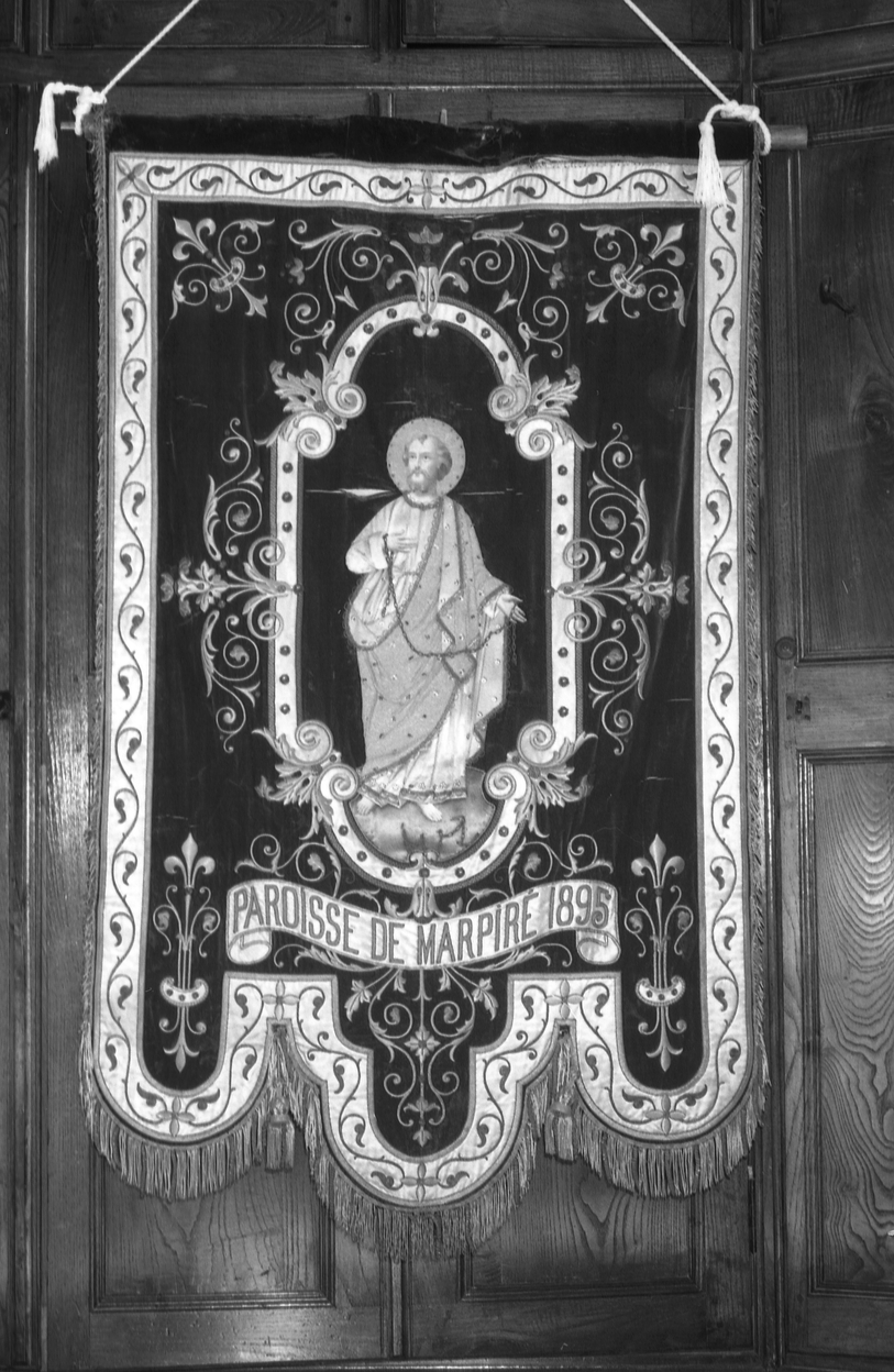 Bannière de procession : Vierge, Saint Pierre, dite bannière de paroisse, église paroissiale Saint-Pierre (Marpiré),