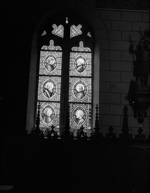 Verrières (2) (vitrail archéologique) : les apôtres (baies 1 et 2), église paroissiale Saint-Pierre, Immaculée-Conception (Mecé),
