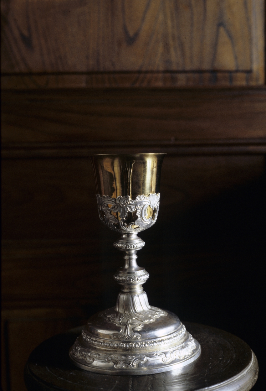 Calice et patène réalisés par Joseph Marie Frin entre 1752 et 1754 et modifiés vers 1970.