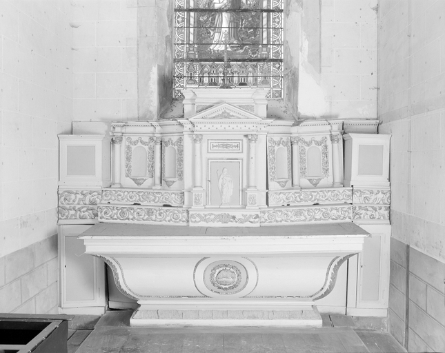 Ensemble composé d'un autel et d'un tabernacle exécutés vers 1830, dont les décors et la plinthe sont en stuc ; les 2 gradins et les ailes du tabernacle proviennent de l'ancien maître-autel réalisé pendant la 1ere moitié du 18e siècle. Cet autel était installé dans le bas-côté nord jusque vers 1930, date à laquelle il a été remplacé à cet endroit par l'autel votif de sainte Thérèse.