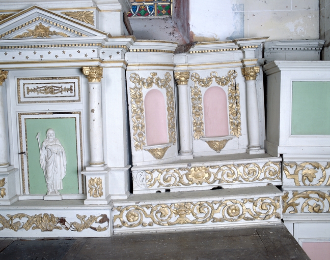 - PIOBJT Conserve des parties de l'ancien maître-autel (gradins et ailes du tabernacle).