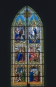 Verrière de la baie 4 (verrière à personnages) : Adoration des Mages, Fuite en Egypte, La Samaritaine au puits, Résurrection du fils de la veuve, Résurrection du Christ, Pentecôte,