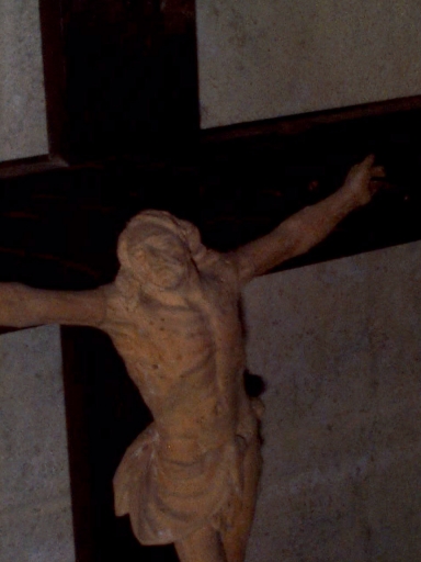 Christ en croix datant probablement du 18e siècle, remonté sur une croix du 19e siècle (?).