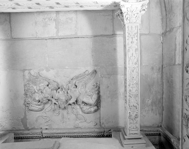 - calcaire, taillé, mouluré, décor en bas relief, décor en demi relief
