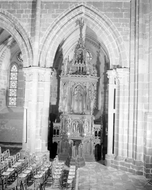 Chaire à prêcher réalisée par le sculpteur vitréen Augerie sur une commande du curé Turmel (10 000 F).