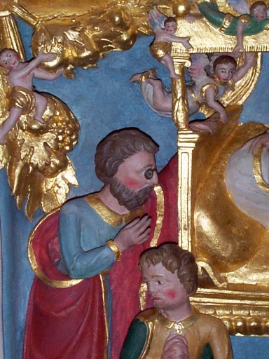 - bois, peint, polychrome, doré, décor en demi relief