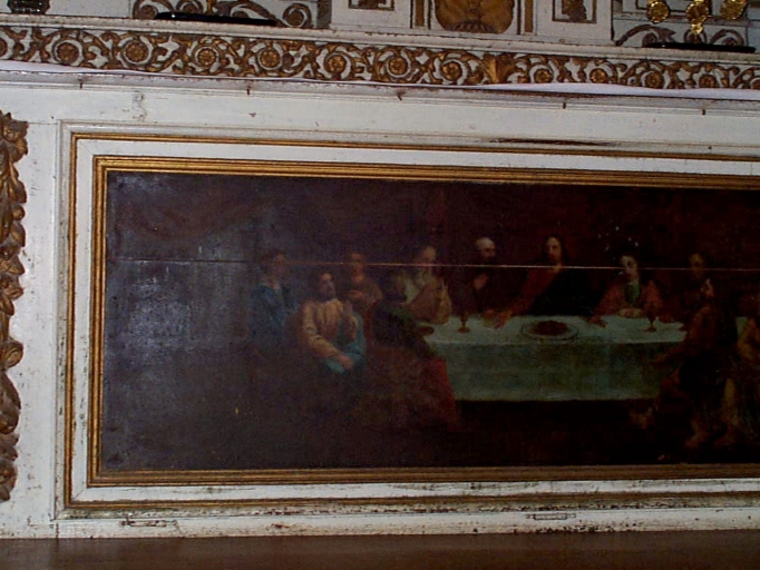Devant d'autel à cadre mobile maintenu par 2 gonds et 2 crochets de fer, datant de la 2e moitié du 17e siècle.