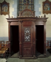Le type de cette chaire ainsi que l'analogie stylistique qui peut être faite avec les confessionnaux de l'église (le décor en bois ajouré de la rampe d'escalier se retrouvant sur l'abat-voix est à rapprocher du décor des portes des confessionnaux) permettent de penser que cette oeuvre date des années 1840. Il faut cependant signaler que des travaux historiques (Pocquet du Haut-Jussé) la donnent comme étant une oeuvre de style néo-Renaissance réalisée autour de 1900.