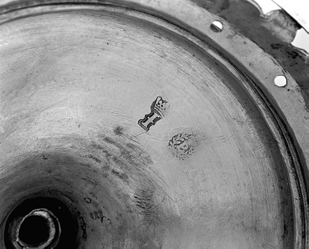 2 poinçons sous le pied : "I couronné" ; "P au centre d'une couronne de laurier, surmonté d'une fleur de lys (?).