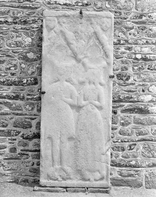 Dalle funéraire représentant les effigies en relief d'un seigneur (de Lava ou de L'Irvouïe ?) et de son épouse.