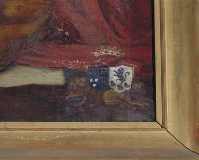 Copie réalisée au 19e siècle d'apès une oeuvre de Fra Bartolomeo (original conservé au Palais Pitti à Florence). Les armoiries semblent appartenir à la famille de Charette (?).