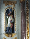 Statue en bois peint à revers évidé du 18e siècle vraisemblablement réalisée pour le retable qu'elle occupe et par le même atelier que la statue de saint Eloi qui lui fait pendant.