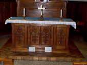 Statue en terre cuite datant probablement de la seconde moitié du 17e siècle mais dont la polychromie actuelle a été réalisée en 1924.
