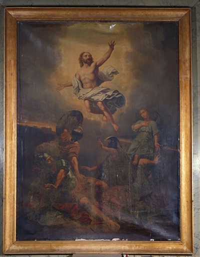 Tableau exécuté par Paillard, peintre à Rennes, en 1842 ; il s'agit d'une copie d'un tableau de Frère André réalisé en 1711 pour l'église de la Salpêtrière à Paris, oeuvre qui fut également gravée par P. Drevet.