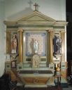 Ensemble de l'autel secondaire sud (2 degrés, autel, retable, tabernacle, 2 gradins),