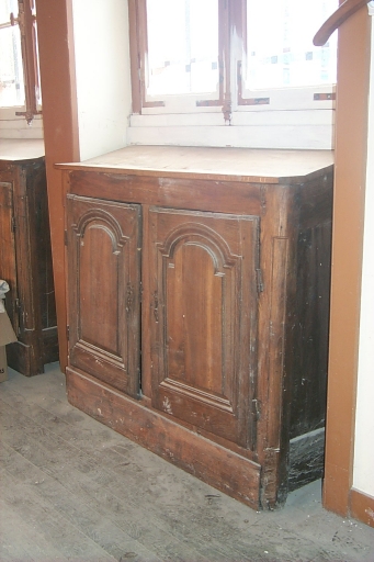 Nombreuses réparations et éléments refaits (plateaux supérieurs en particulier) ; planches rapportées en façade.