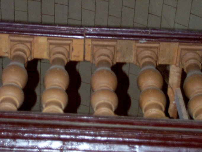 Tribune aménagée au milieu du 19e siècle ; de nombreuses traces de remploi visibles sur la balustrade (remploi de balustres, copie du modèle en complément) permettent de penser à la réutilisation d'une ancienne clôture de choeur du début du 19e siècle.