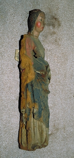 Statue en bois polychrome pouvant être datée du 16e siècle.