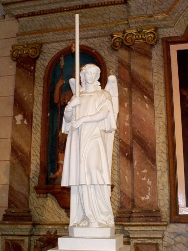 Léger décollement de la couche picturale ; ange de droite : 2 doigts de la main gauche sont cassés.