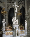 Ensemble du maître-autel exécuté en 1902 par le sculpteur nantais Joseph Vallet qui réalise également la porte en bronze du tabernacle ornée d'un Bon Pasteur.