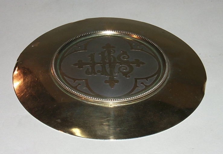 Calice et patène réalisés par les orfèvres parisiens Demarquet frères, après 1890, date d'insculpation de leur poinçon, et vendus par le marchand rennais Bétin.