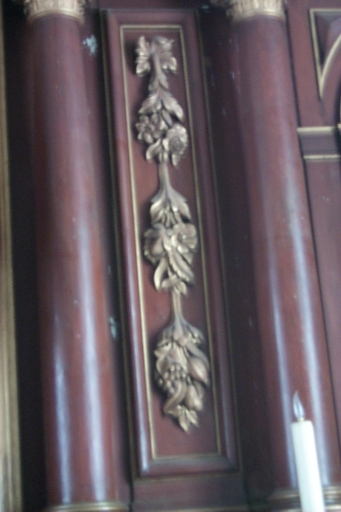 Eclats de peinture ; quelques manques ; dégré inférieur droit vermoulu ; manque le tableau d'autel.