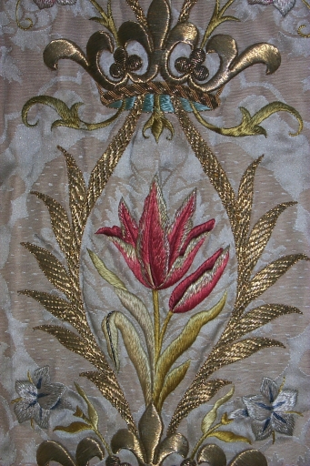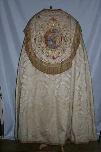 Chape en soie avec applications brodées pouvant être datée entre 1880 et 1910.