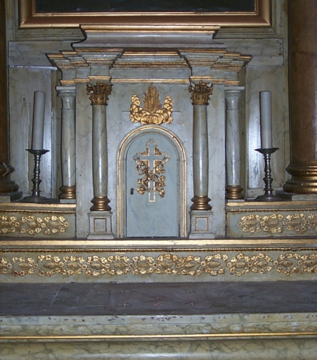 Ensemble du maître-autel : autel, 2 gradins d'autel, tabernacle, retable, 2 degrés d'autel