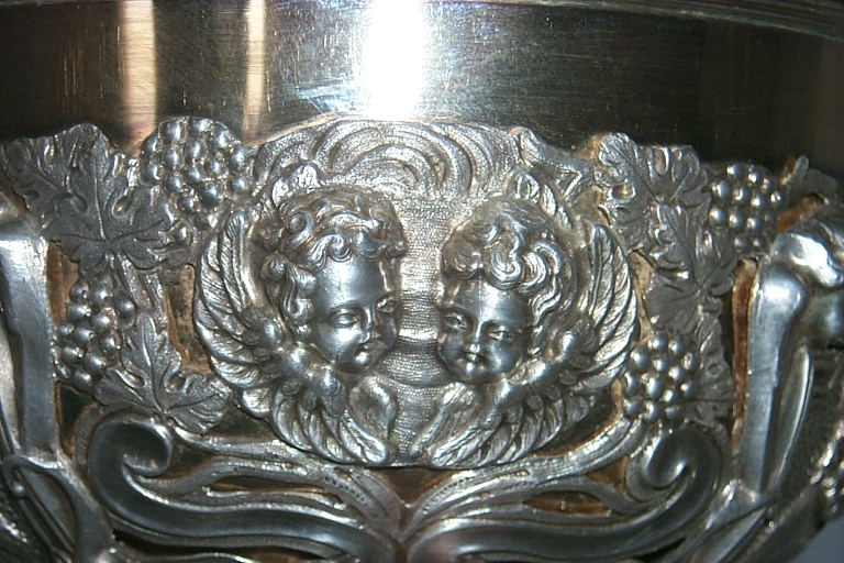 - argent, repoussé, ciselé au trait, ciselé au mat, doré, fondu