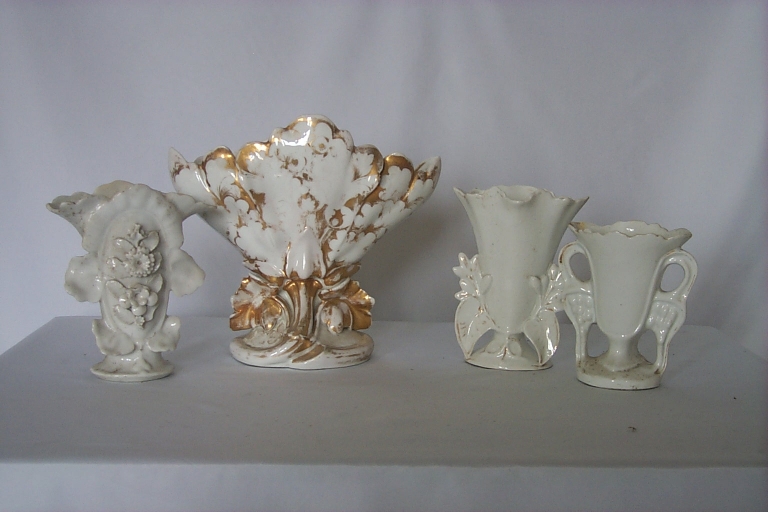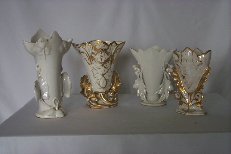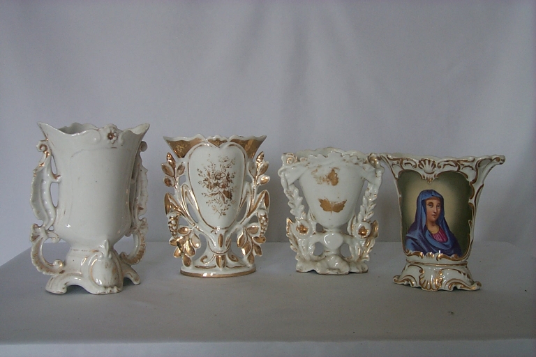 12 vases sont seuls ; dorure effacée ; un vase est légèrement cassé.