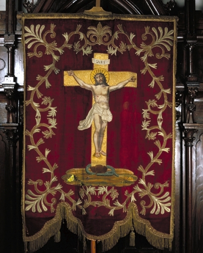 A une époque indéterminée du 19e siècle, les éléments principaux du décor de la bannière du 18e (Christ en croix, saint Méloir) ont été refait, à une échelle plus petite.