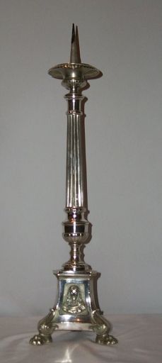 Garniture d'autel : croix d'autel, 2 chandeliers d'autel,