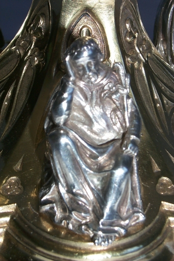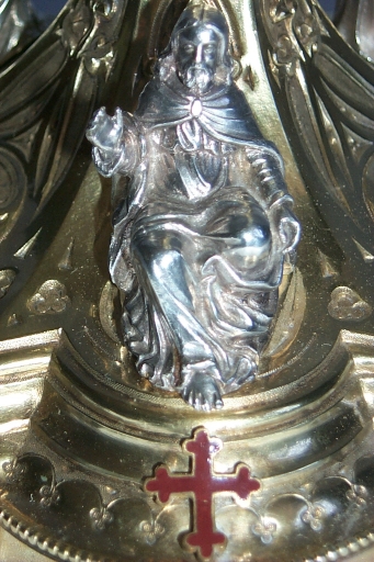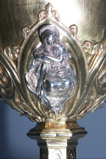 Ce calice de style néogothique fut réalisé dans la seconde moitié du 19e siècle par l'atelier des frères Favier, orfèvres à Lyon.