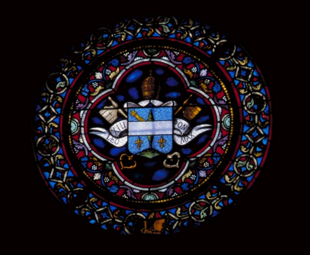 Les verrières du bras nord du transept ont été réalisées entre 1878 et 1903, dates du pontificat de Léon 13.