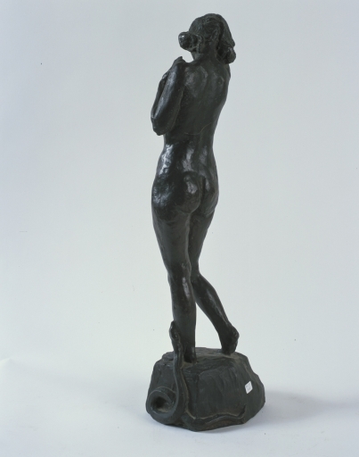 Signature en creux sur la terrasse à gauche : Armel Beaufils. Inscription devant, sur la plinthe : EVE.