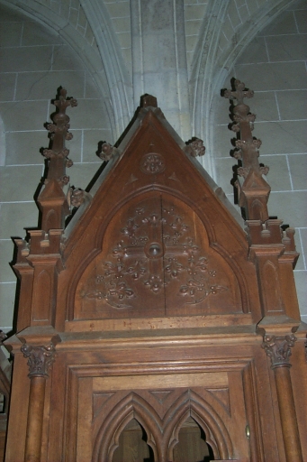 Confessionnal sud : manquent quelques éléments du décor, une partie du couronnement gauche ; confessionnal nord : manque le couronnement de la loge droite.