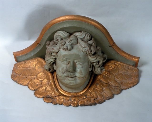 - bois, mouluré, décor en ronde bosse, décor dans la masse, peint, doré