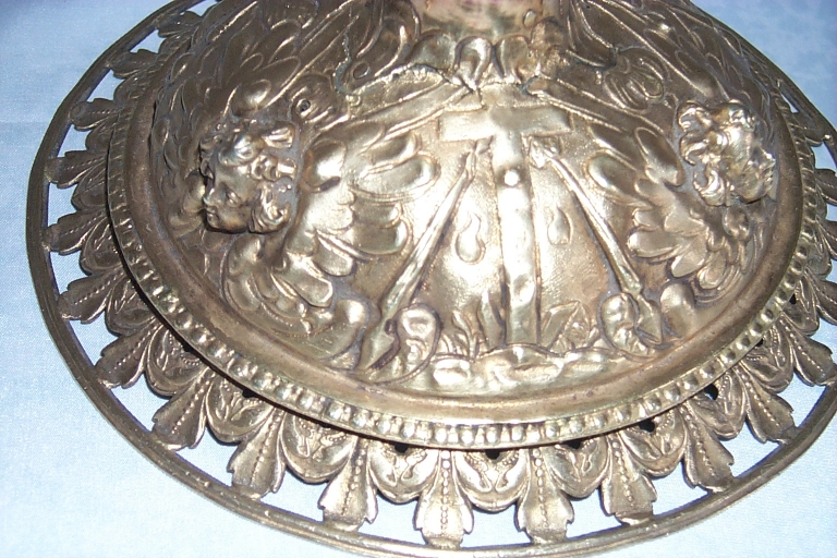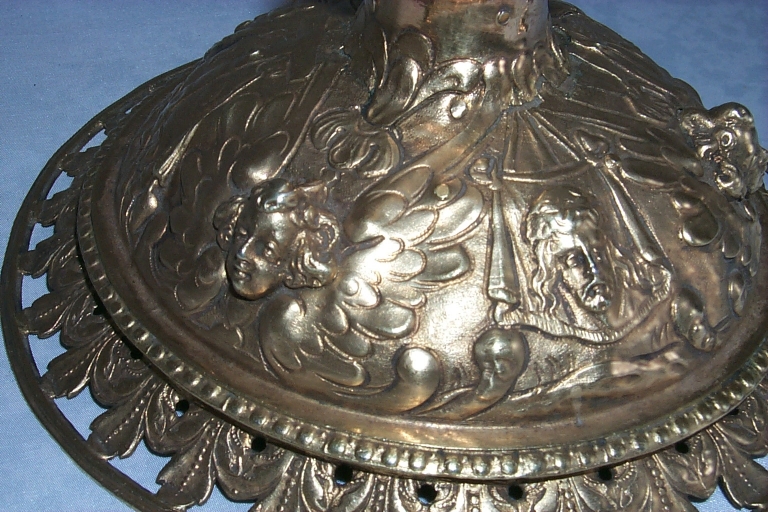 - argent, fondu, repoussé, ciselé au trait, doré, décor en demi relief