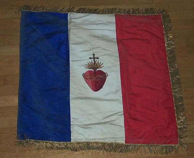 Inscription brodée sur le premier drapeau : GROUPE / SAINT MELAINE ; PAROISSE / de LIEURON.