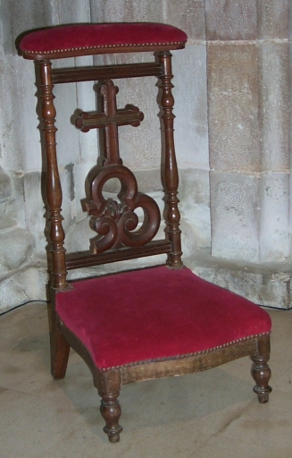 Les garnitures et le tissu sont neufs. L'un des prie-Dieu est peint, il lui manque un bras de croix ; l'autre est ciré, il lui manque une partie du trilobe.