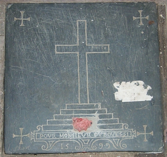 Inscription gravée sur le pierre d'autel : POUR MONSIEUR DU BOUESSI / 1599.