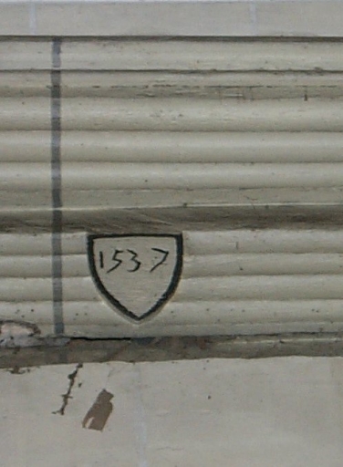 Inscription et date peintes sur des écus ; chapelle 1 sud, sablière est : C. HAV / BOVAVS / 1537 ; IA. NETTAYS / LECUUZ ? ; chapelle 2 sud, sablière ouest : 1537 ; chapelle 2 sud, sablière est : P : A ou G UIB / BERT.