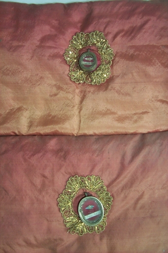 Inscriptions sur des phylactères dans les médaillons : S. Aloysn Gonz / S. Joach. Va / S. Franc. Xaver / inscription illisible.