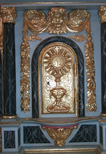 Ensemble du maître-autel : autel, tabernacle, retable, gradin d'autel, degré d'autel,