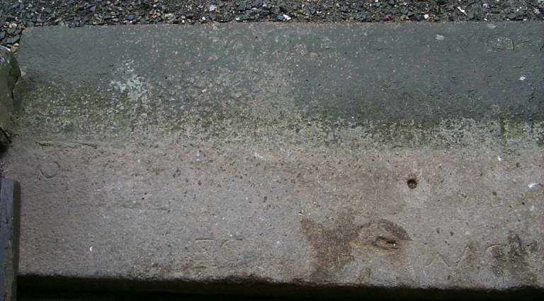 La dalle est utilisée comme seuil de l'entrée occidentale de l'église.