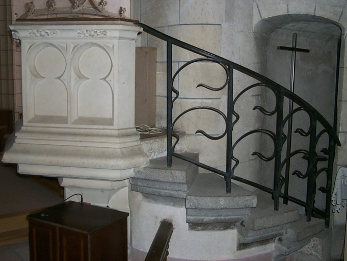 Thorigné. Eglise paroissiale Saint-Melaine. Plan de la chaire et du pilier à droite de l'entrée du choeur. Plan attribué à Arthur Regnault, [s.d.], encre et crayon sur papier. (A.D. Ille-et-Vilaine : 35 Fi, fonds Arthur Regnault).
