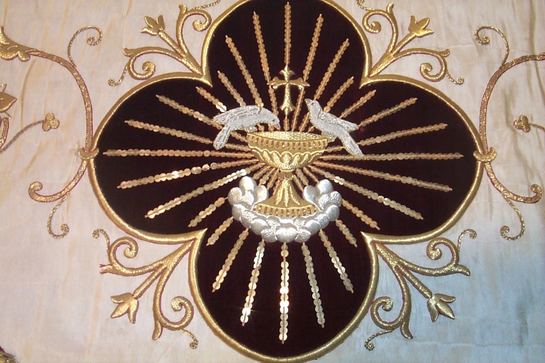 - soie, blanche gros de Tours, moiré, application sur textile, adjonction d'éléments